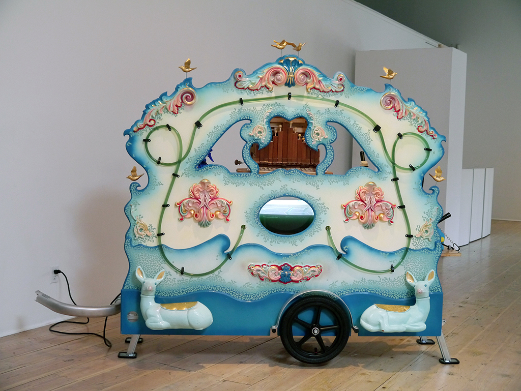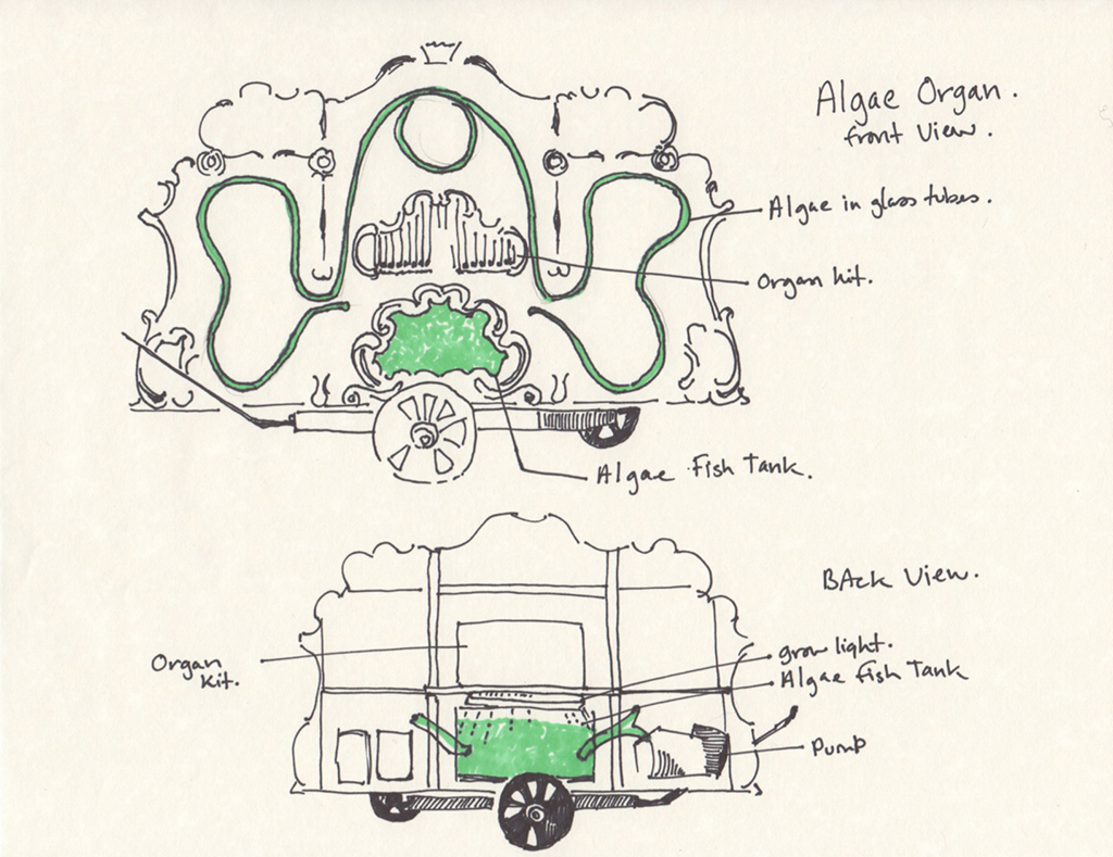 Baroque Biology Includes (1) The Great Lakes Algae Organ (2016) a bicycle propelled street organ that grows and displays living spirulina algae. Audiences are invited to enjoy live organ music while engaging with a live algae colony. The organ welcomes discussion of algae’s many roles as a superfood, as the largest producer of oxygen in our atmosphere, as a possible source of biofuel, and as an invasive species infesting waters in The Great Lakes. It is an absurdist object – connecting the science and technology of farming algae with a long Dutch tradition of street entertainment. But it is this absurdity - this element of play - that invites members of the general public to let their guard down and have a complex engagement with a biological artwork – an artist, a scientist, and another species.